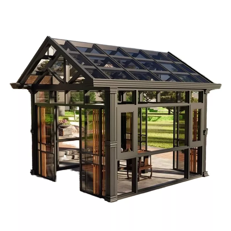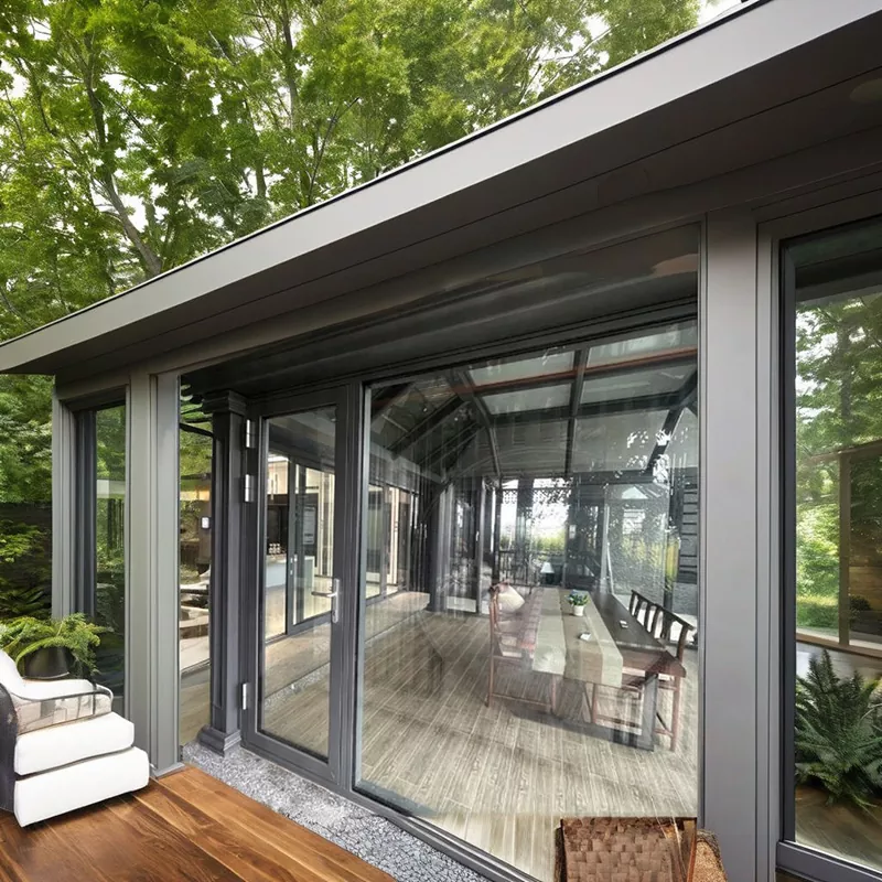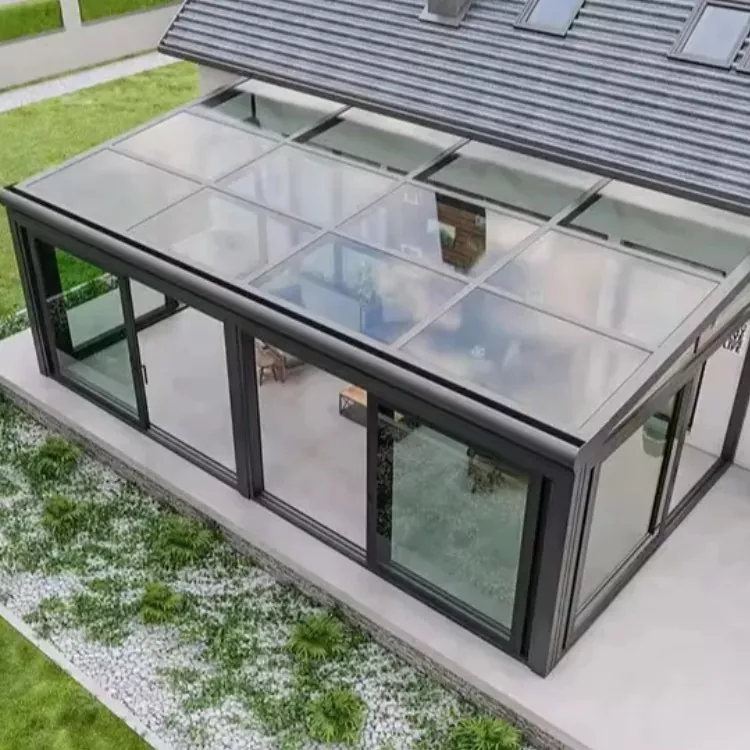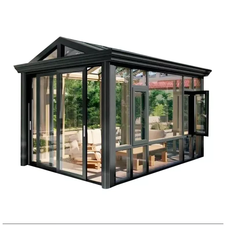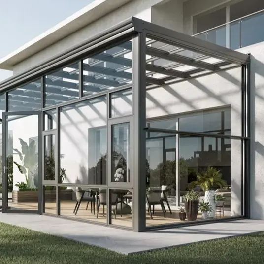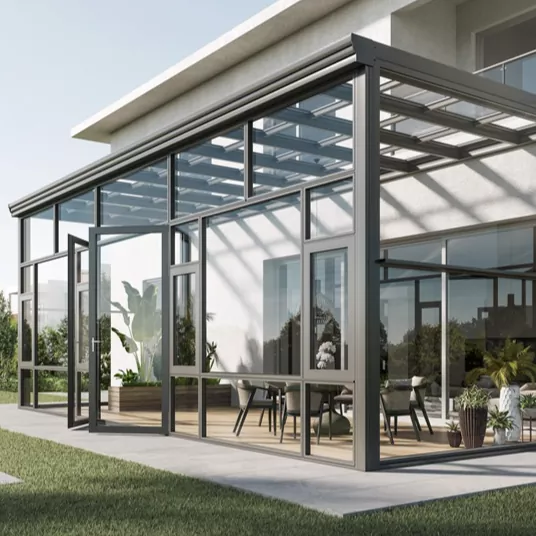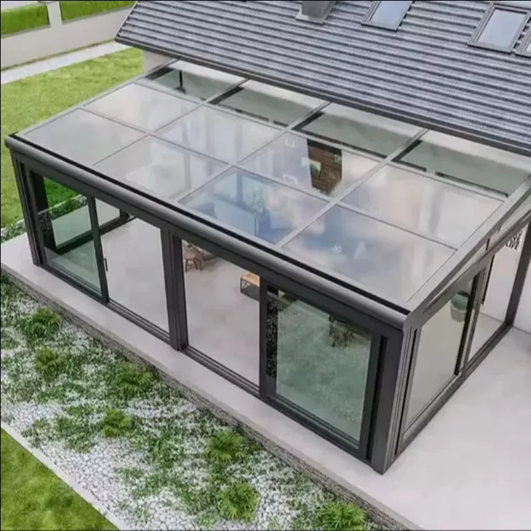 アルミニウム合金サンルームは全体フレーム+ガラス複合構造を採用しています。柱と梁は固定されています 接合部にシールと防水処理を施した精密コネクタ。上部には 3% ~ 5% の排水勾配が確保されています ガラス製で、水の蓄積や漏れを防ぐために隠された排水溝と一致しています。フレームの色はカスタマイズできますが、 フロスト、シャンパンゴールド、コーヒーなどのさまざまな表面処理をサポートし、さまざまな建築に適応します スタイル。前述の職人技と利点を組み合わせた全体的なデザインは、実用性と安全性のバランスが取れています。 テラスの寸法に合わせて正確にカスタマイズできます。
